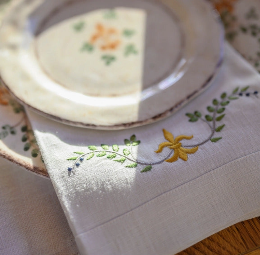 Add timeless elegance to your table with this beautiful 100% European linen napkin with our Medici pattern. Embroidery colors are designed to complement our favorite tabletop collections, this napkin adds beauty to any part of your home.