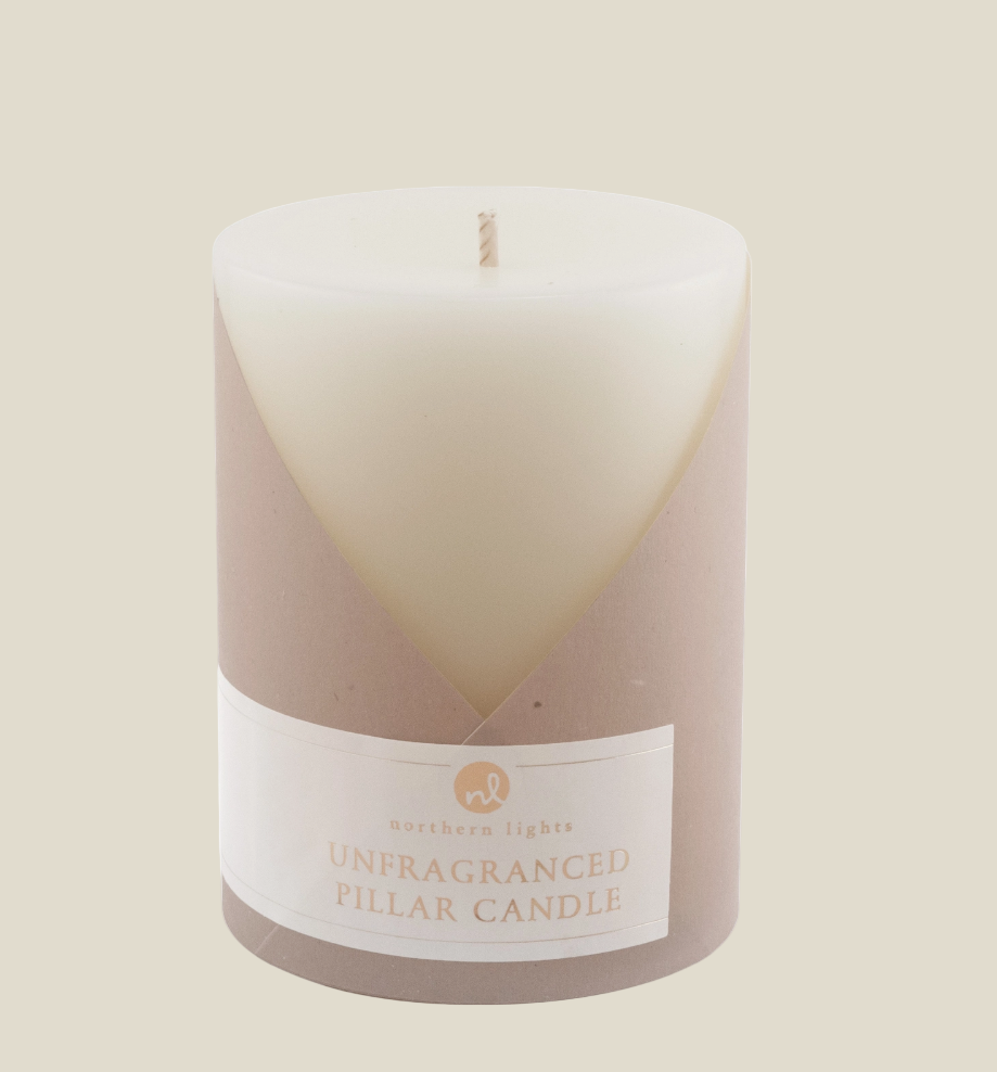 These premium quality pillar candles feature high-caliber wax, refined finish, and solid color. Featuring a new concave top for a better burning experience! Product Details: Burns 80 hours. 3in x 3in x 4in.