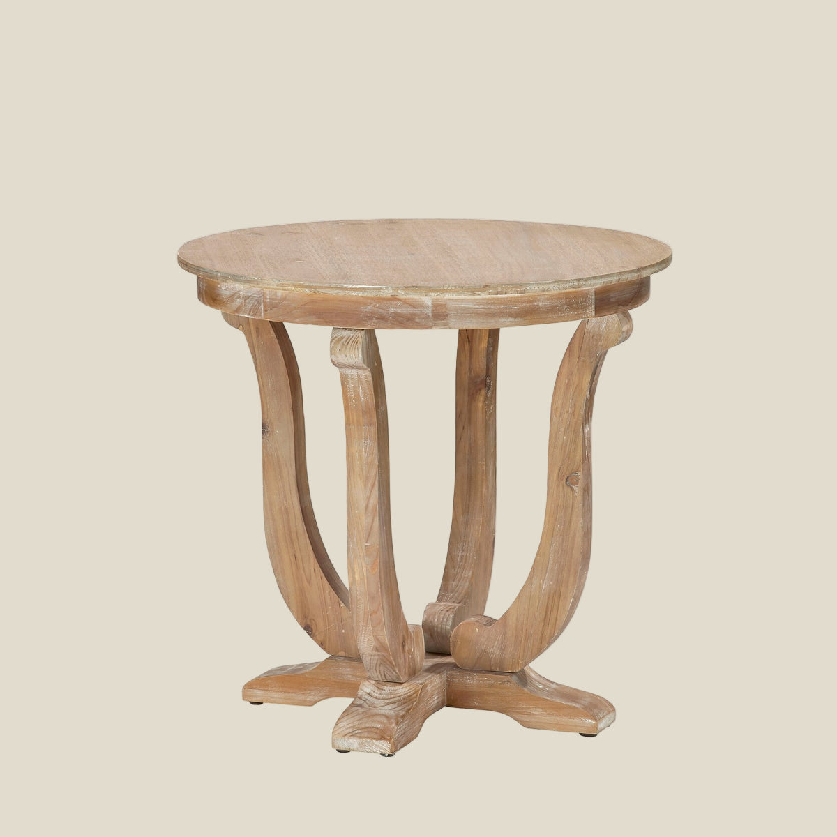 Tinley Accent Table - Crafted from fir wood, the Britt Side Table brings timeless charm with its gracefully curved pedestal base and natural wood finish. The sculptural silhouette adds elegance, while the round tabletop offers just the right amount of space for everyday use. Its sturdy construction and organic texture make it a versatile addition to both rustic and refined interiors.