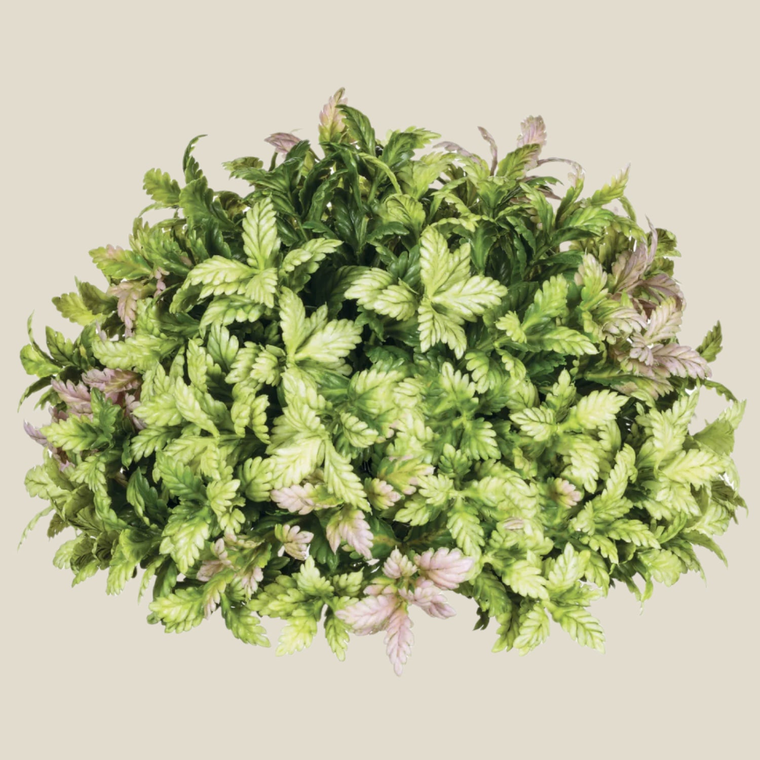 Add a touch of natural elegance to any space with the Mini Tea Leaf 1/2 Orb. Featuring delicate leaves in soothing shades of green with a subtle hint of pink, this charming piece fits perfectly in a pot, basket, or on a bookcase. Its compact size and graceful design bring a fresh, inviting atmosphere to your home décor.